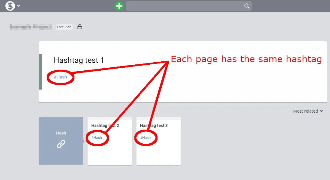 Pages with the same hashtag will be displayed together at the bottom of the screen. You can use the same hashtag for all related pages to make the connection easier to understand.