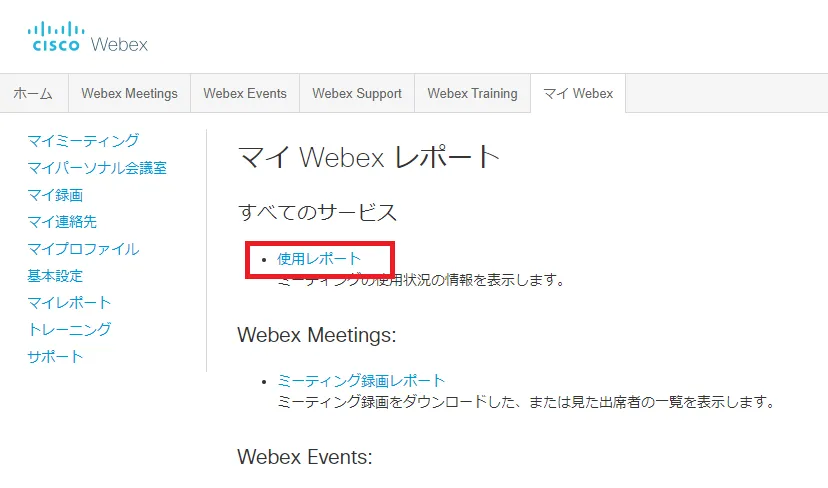 - A list of meetings will be displayed. If it is displayed in the “Usage summary report (provisional version)”, a proper report has not been generated yet. Please wait for it to be displayed in the “Usage Summary Report (final version)”. Click on the agenda name.