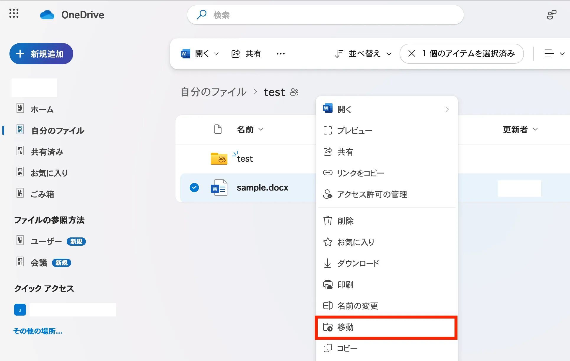 - 移動させたいファイルを右クリックし,「移動」を押してください.