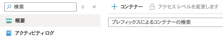 ブラウザのAzureトップページから「ストレージアカウント」=>「上で作成したストレージアカウント」=>「概要」=> 「Blob service」へアクセスします.
