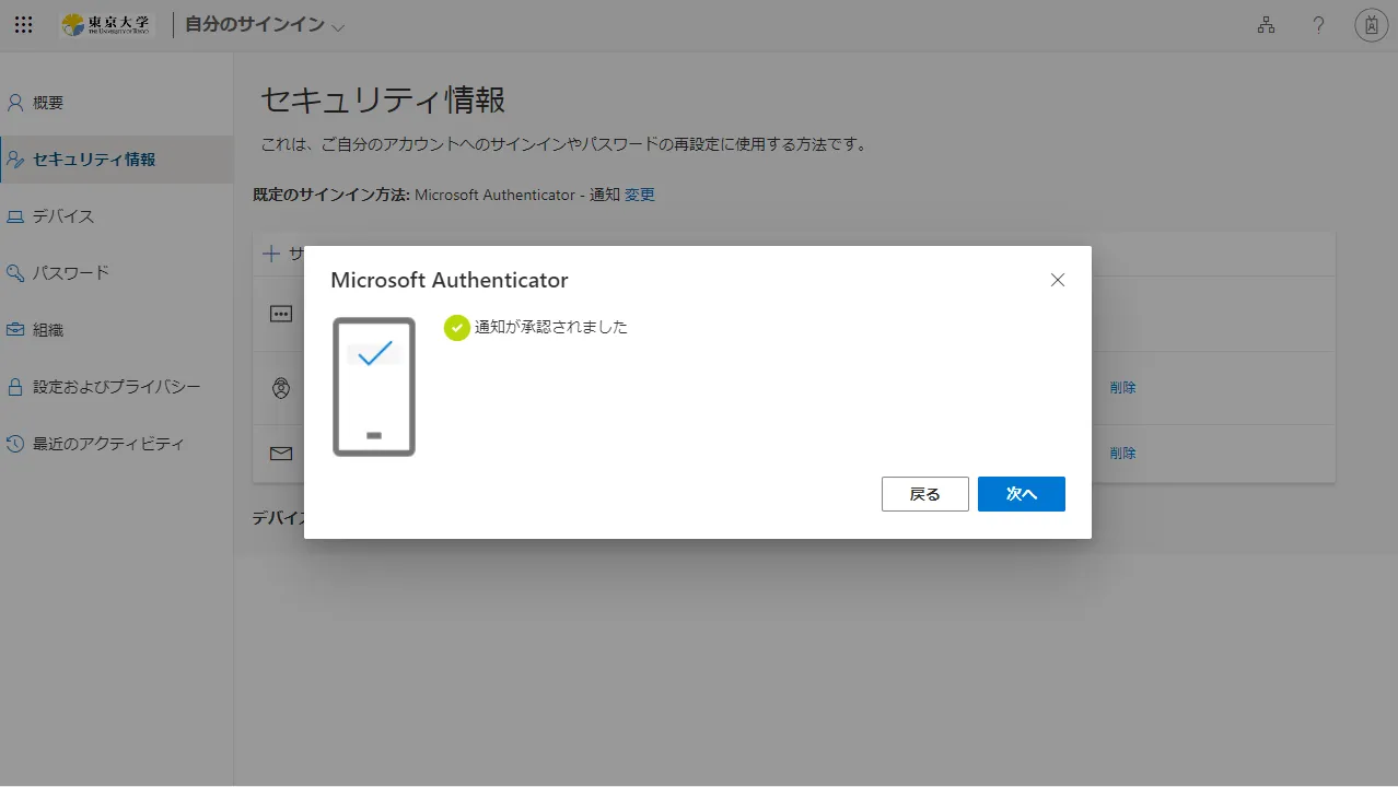 - 「セキュリティ情報」と書かれた多要素認証の設定ページが表示されればOKです.