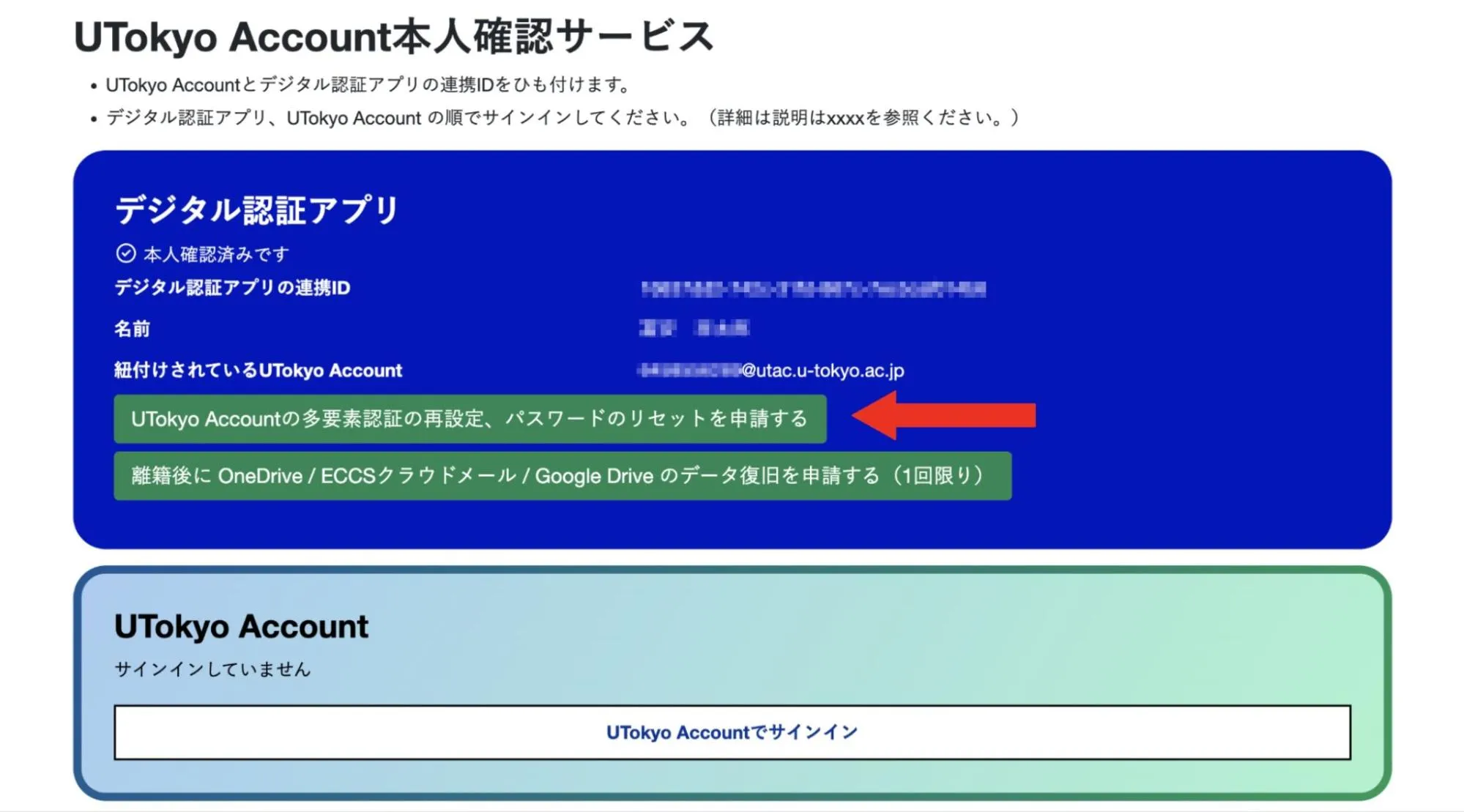 「UTokyo Accountの多要素認証の再設定、パスワードのリセットを申請する」を押してください.